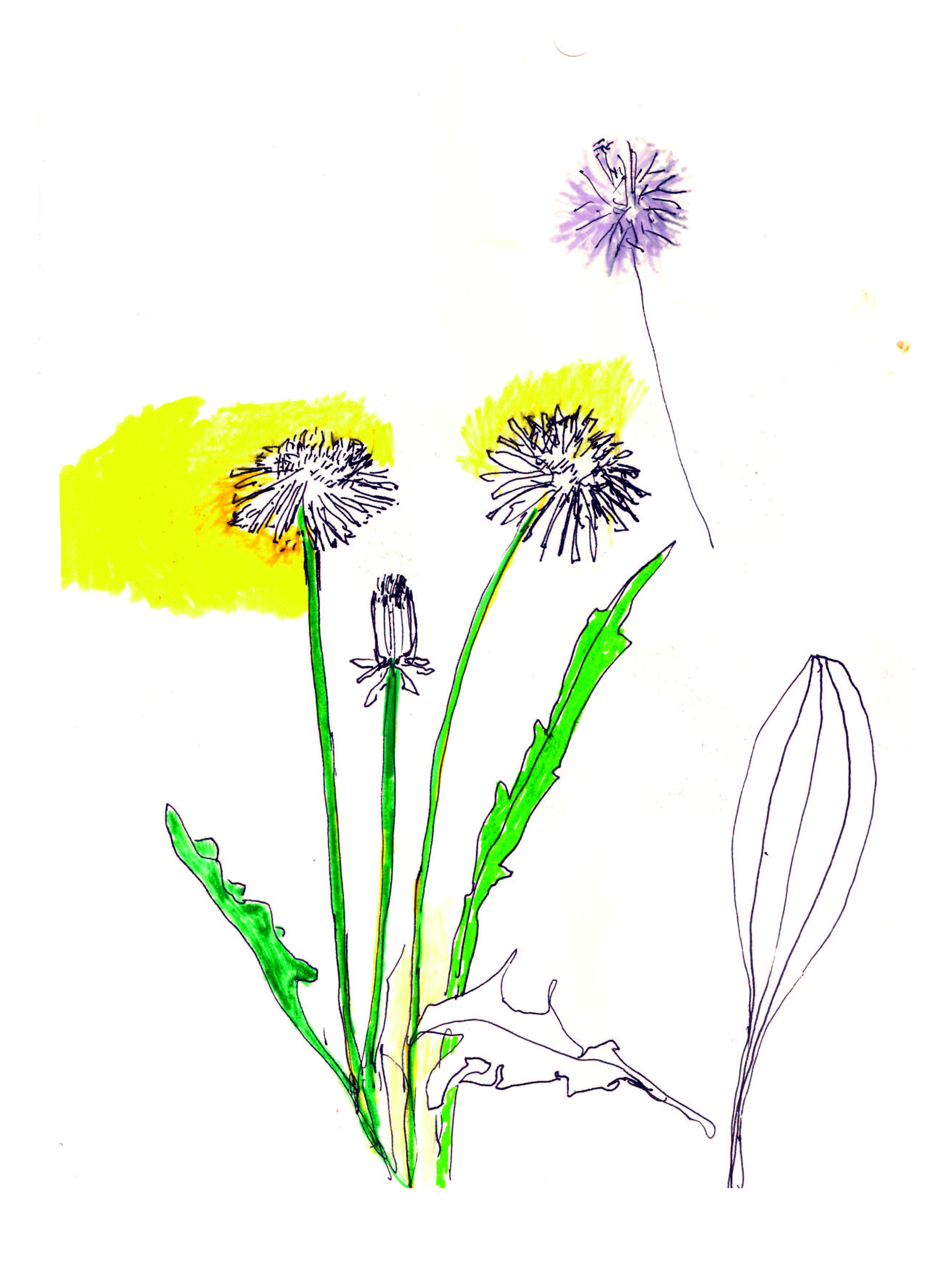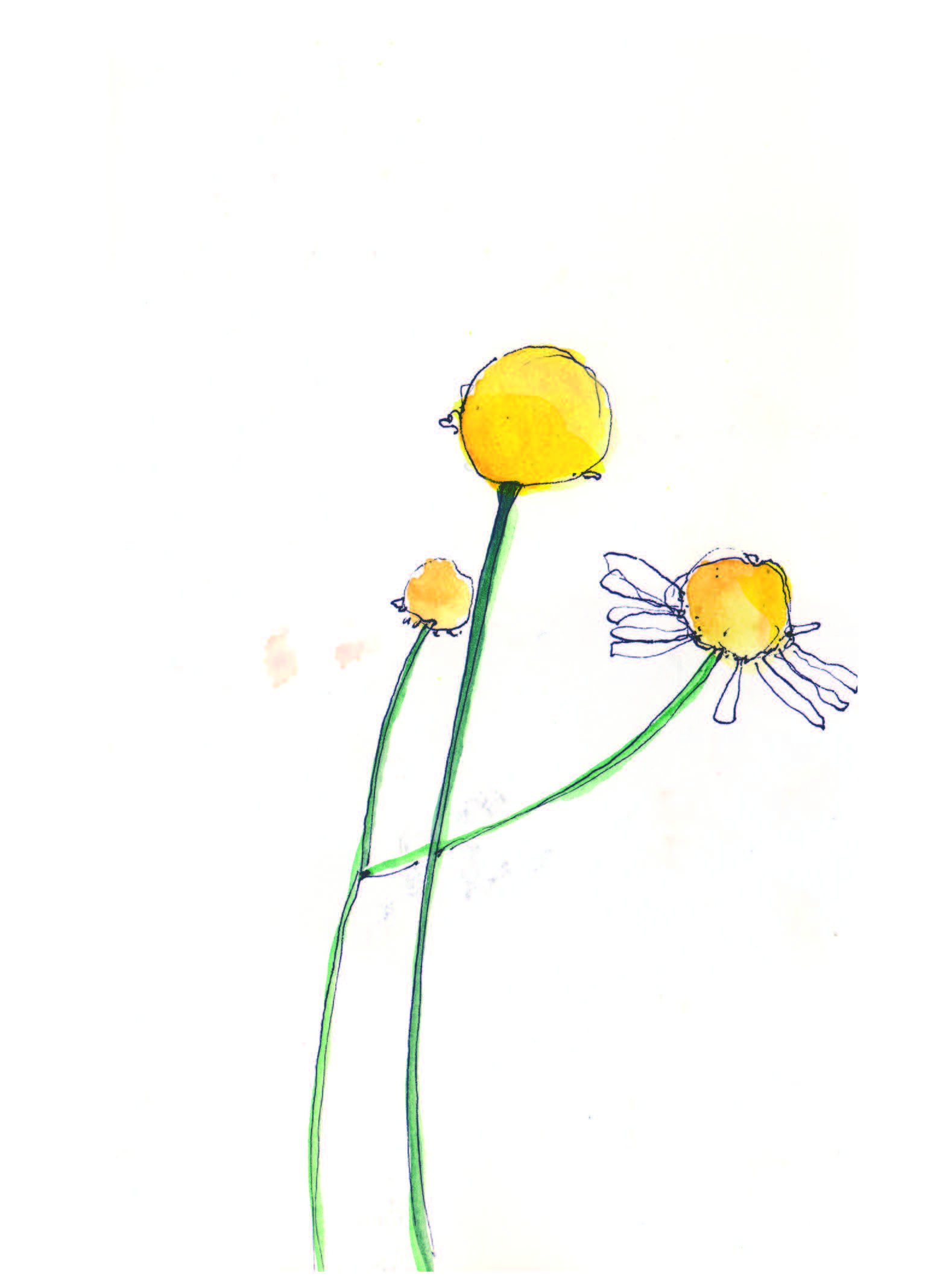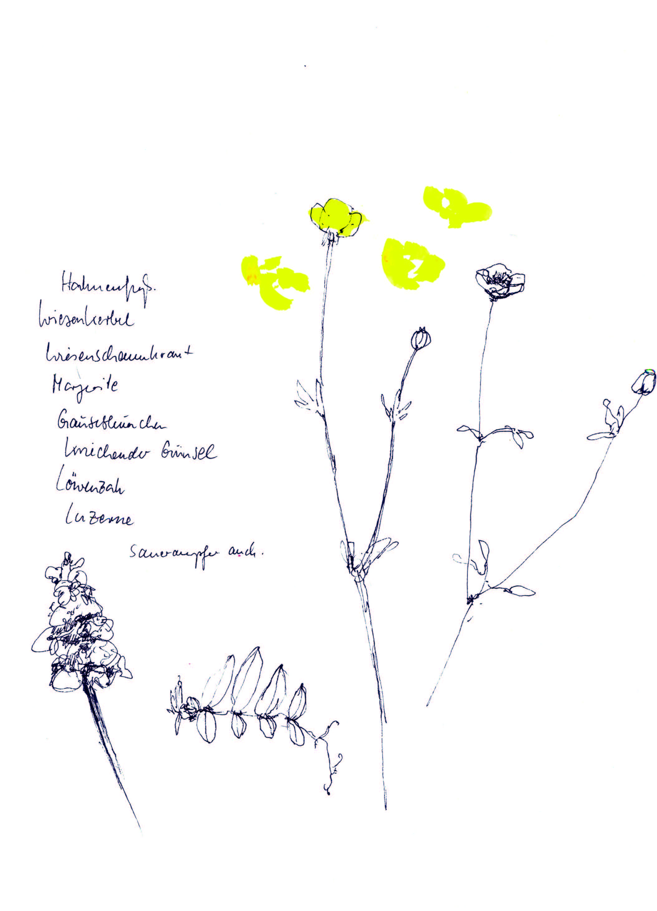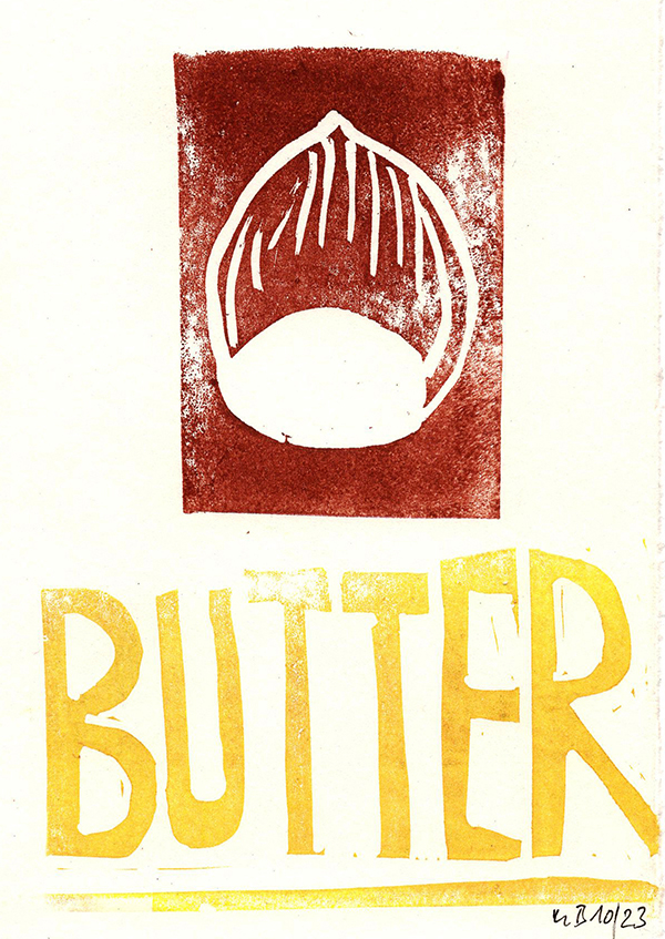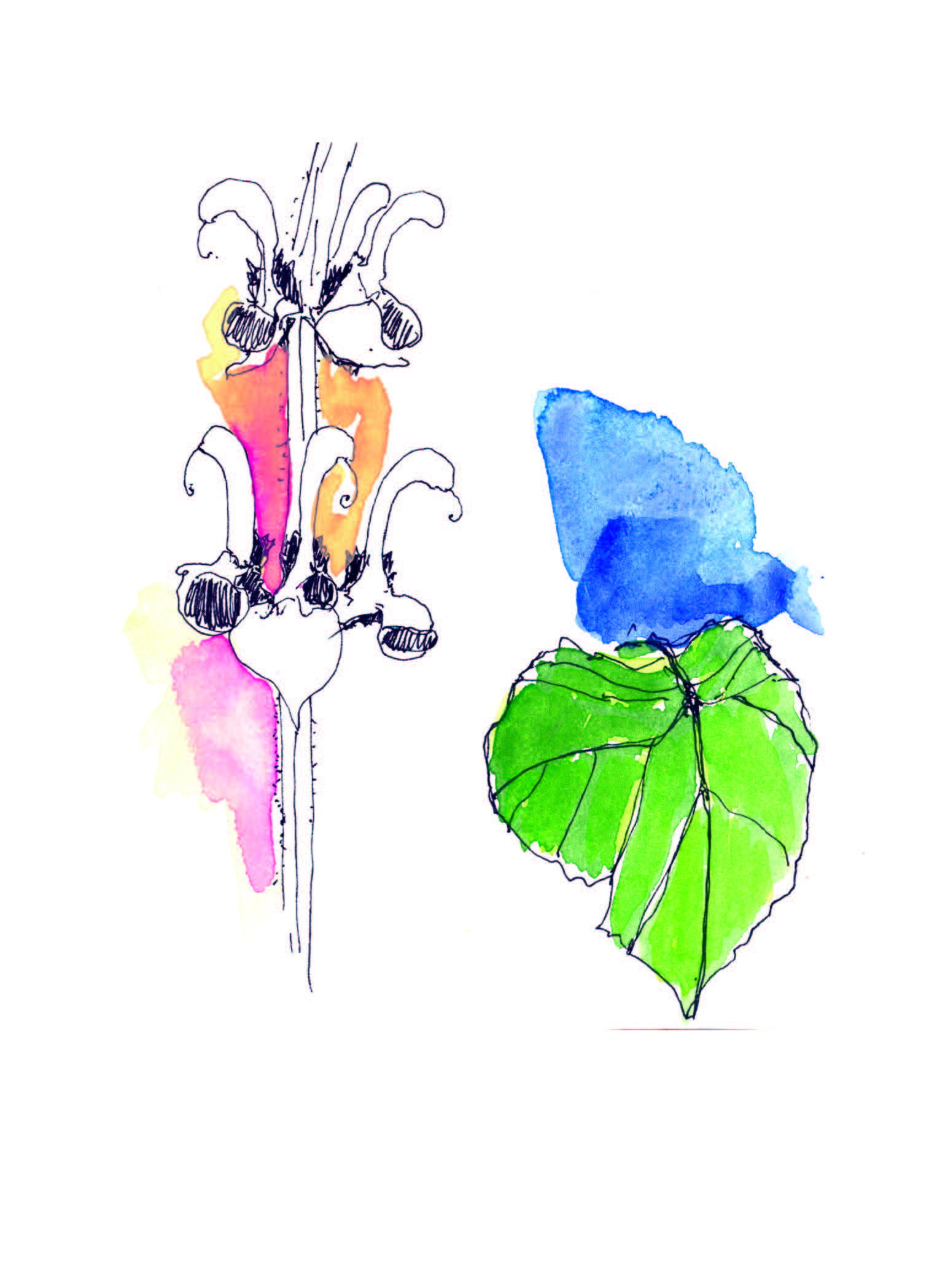 Gartenzeichnungen Die Nuss muss – Stempeldruck auf Papier Es wächst – Aquarell, Kugelschreiber, Tuschestift auf Papier