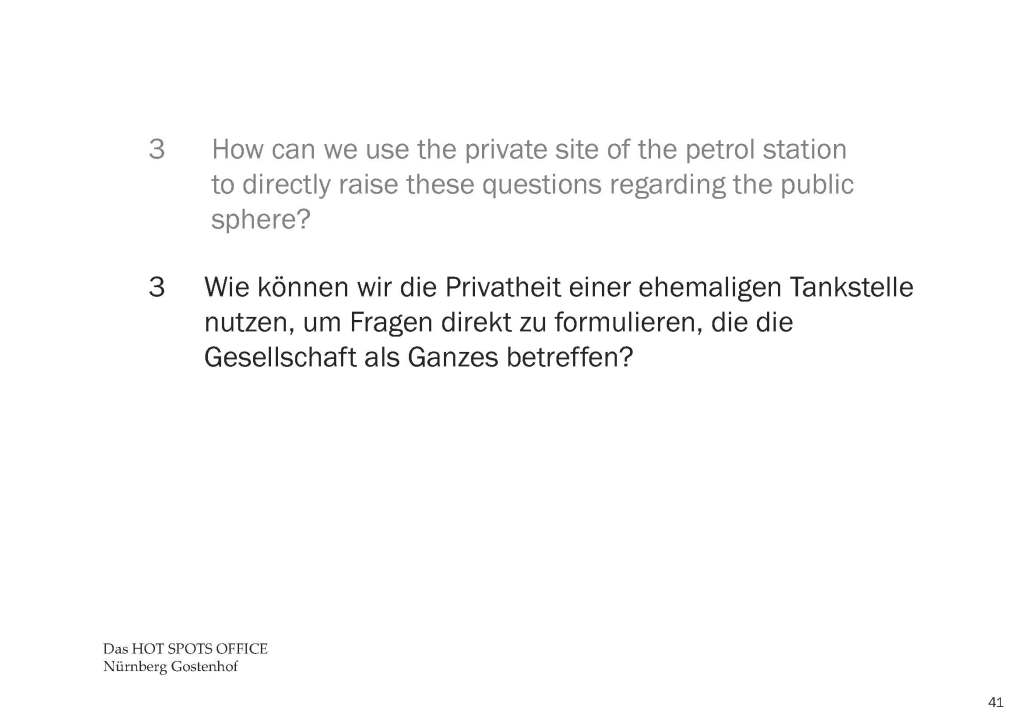 Hot Spots Office Eine vierwöchige Installation/ Aktion an der ehemaligen Tankstelle in Nürnberg, Gostenhof, 2010.