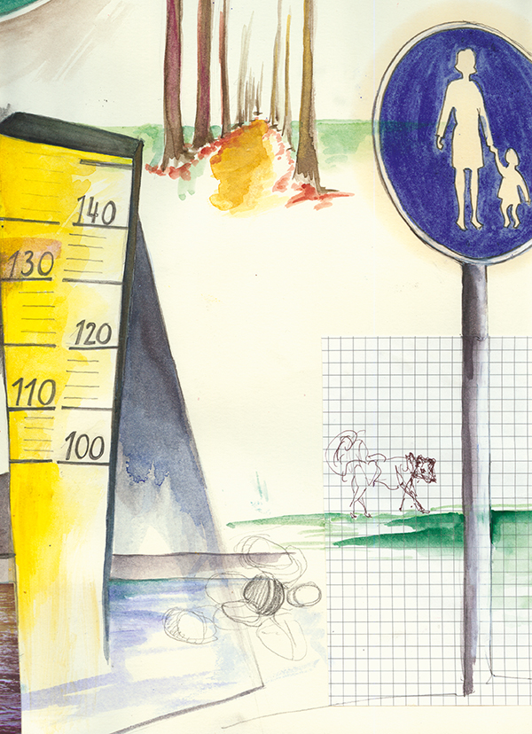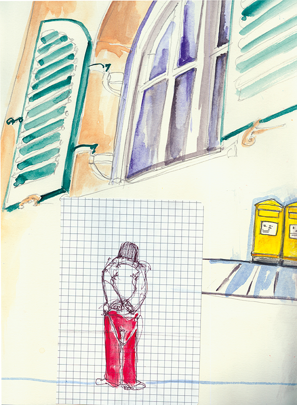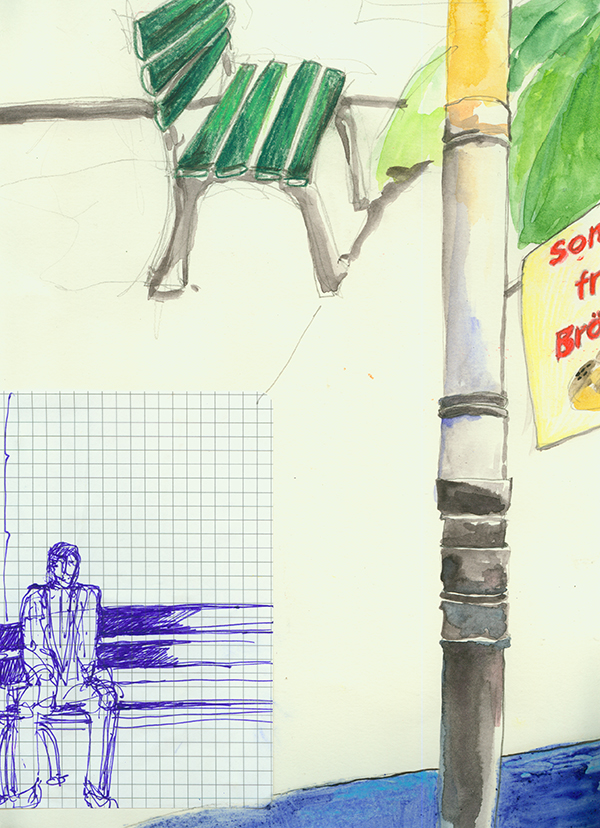 Aquarell, Tuschestift, Kugelschreiber auf Papier
