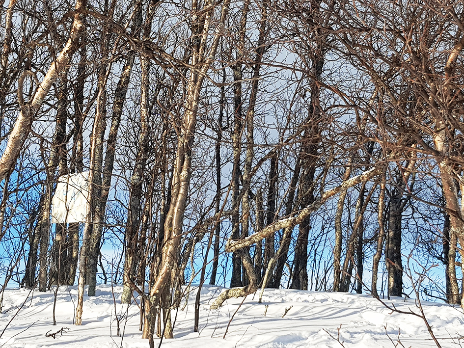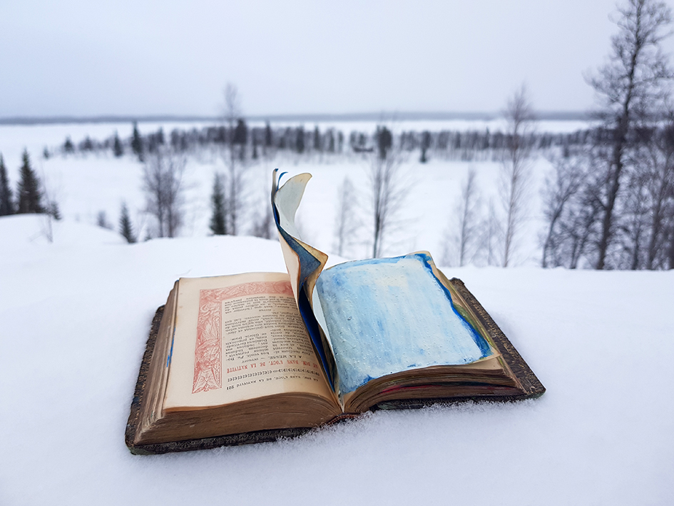 „Ricklundgarden is – seen from my perspective – very far north from where I live. Now that we‘re here, the winter solstice is already over. It‘s February and the days are starting to get noticeably longer again. And, of course there is snow: solid, soft, hard, smooth, brittle, flaky, powdery, icy, glittering, blown away, deep. The nights are not always dark, either the moon or the aurora borealis helps, the snow reflects the light. The lakes are frozen, large open areas open up a walkable expanse. The wind provides variety in the sky and in the soul. Most of the time it‘s quiet, very quiet. The snowmobiles less so. Nature is rough, windblown, profound, harsh and wild, untouched and beautiful. The sun doesn‘t always shine, the landscape is challenging and fascinating.“
